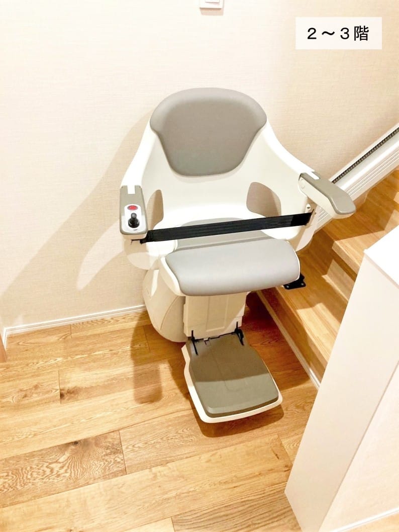 設置までの経緯ご利用者様のご自宅を改修されているリフォーム会社様より設置をご検討されているとのことで、現地調査をさせていただきました。1階から3階までの真っすぐな階段に直線タイプ2台を設置させていただきました。 |