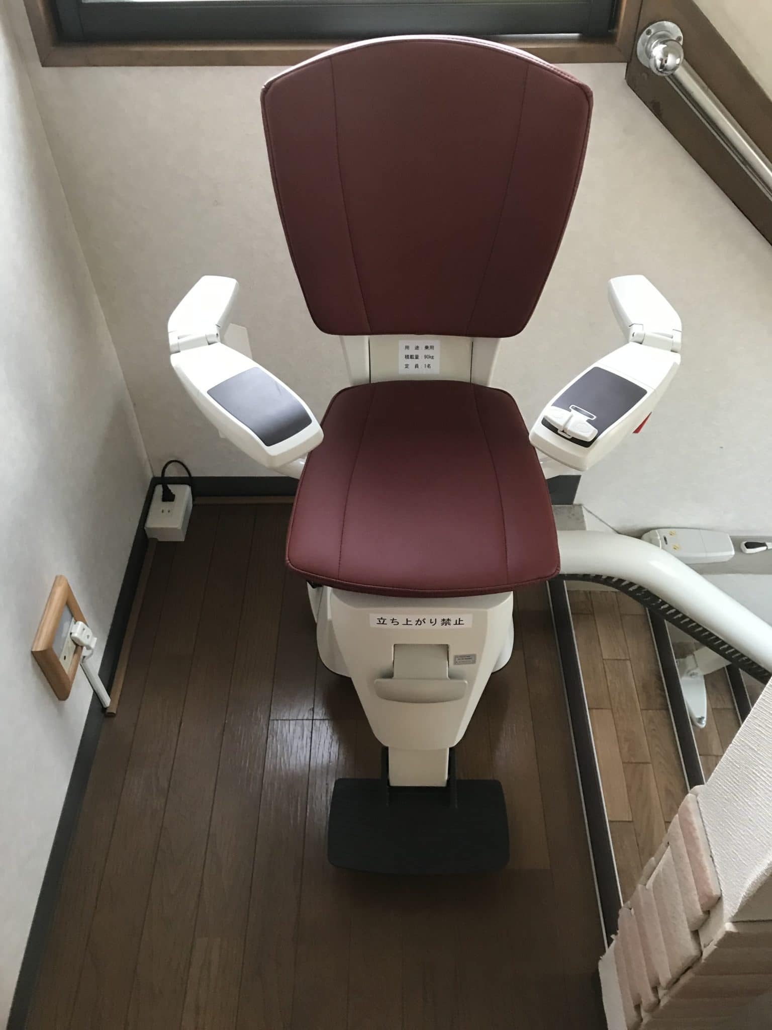ステアリフト曲線タイプには内回りと外回りの2種類設置方法があり、Y様邸では階段の外回りにて設置をさせていただきました。
